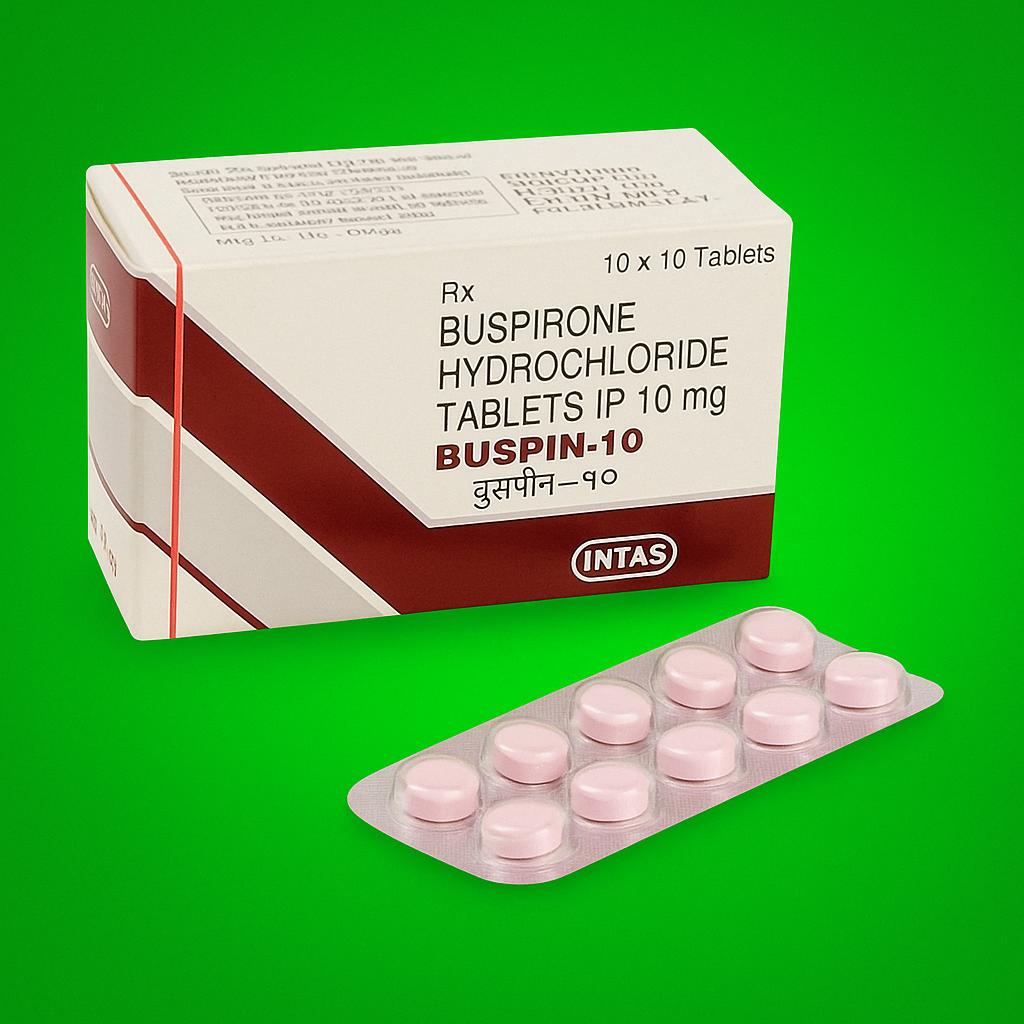 Buspican 10 mg contains Buspirone Hydrochloride, a non benzodiazepine anxiolytic used for the management of generalized anxiety disorder (GAD) and related symptoms. Unlike traditional anti anxiety medications, Buspirone does not cause sedation, dependence, or withdrawal effects, making it suitable for long term therapy.