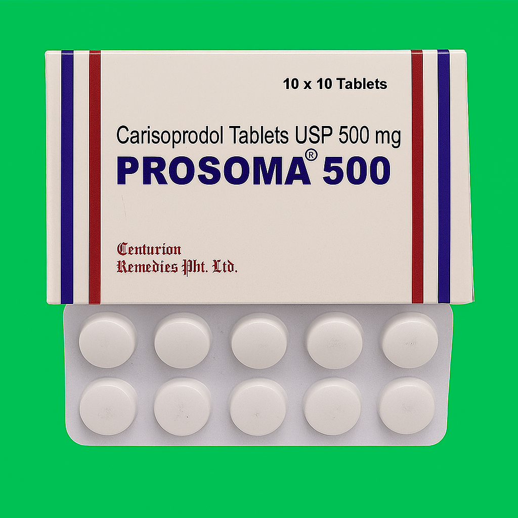 Prosoma 500 mg is a dependable and clinically proven solution for managing acute musculoskeletal pain. It offers fast relief, reduces muscle spasm intensity, and improves physical comfort especially when used in conjunction with rest, heat therapy, and rehabilitation exercises. Its effectiveness and tolerability make it a go to choice for short-term muscle pain relief under medical supervision.