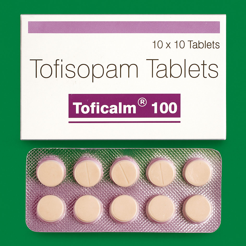 Toficalm 100 mg contains Tofisopam, an atypical benzodiazepine derivative designed to relieve anxiety, stress, and tension without causing sedation or impairing daily functioning. Its unique profile allows patients to remain alert and active while managing anxiety effectively.